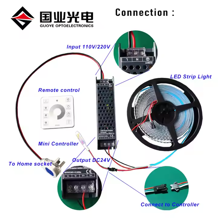 ပါဝါ adapter ၏စွမ်းအားသည်စွမ်းအင်ထောက်ပံ့မှုကိုစွန့်ပစ်ခြင်းသို့မဟုတ်လိုက်လံဖမ်းဆီးခြင်းမှရှောင်ရှားရန် Light Strips ၏စုစုပေါင်းစွမ်းအားကိုထောက်ပံ့ရန် LED ၏စုစုပေါင်းစွမ်းအားကိုထောက်ပံ့ရန်လုံလောက်ကြောင်းသေချာပါစေ။